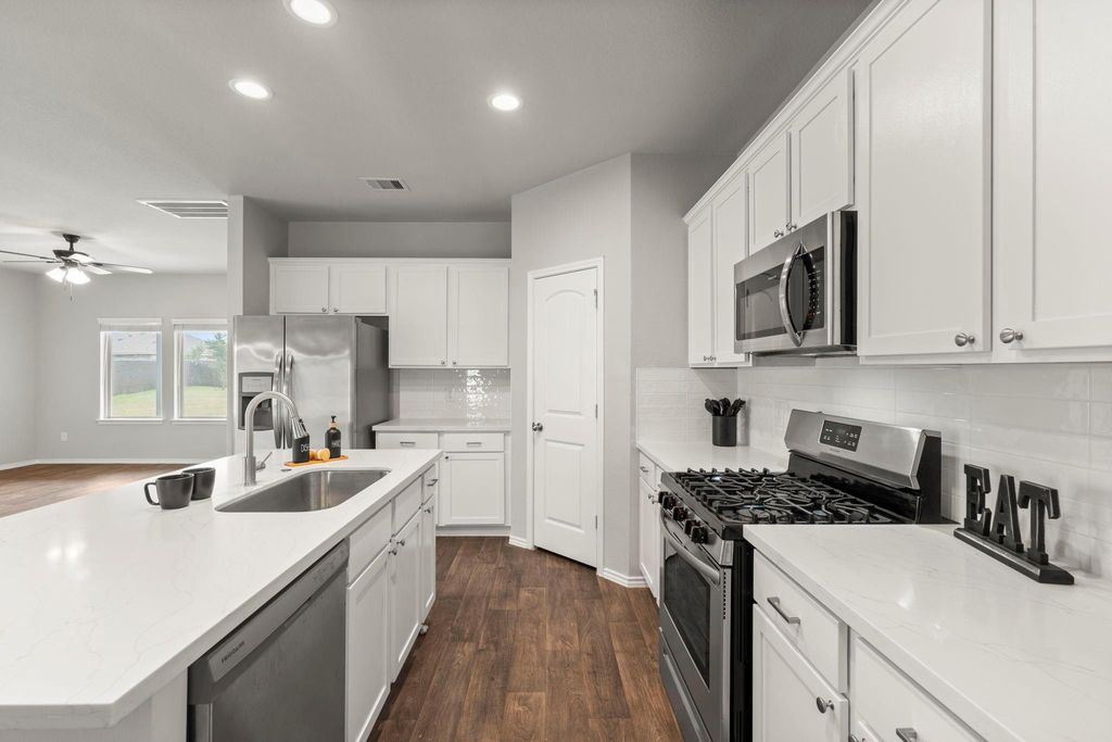 Stunningly Reimagined & Move-In Ready! This tastefully updated 4-bedroom, 2.5-bath home sits on one of the LARGEST LOTS in the neighborhood, an expansive corner cul-de-sac lot w/fenced yard - room for a POOL! Inside, enjoy a flowing, flexible layout w/primary suite on the 1st floor + stylish 1/2 bath for guests. The beautifully renovated kitchen features brand-new quartz countertops, modern sink/faucet, freshly painted cabinetry w/upgraded hardware & premium stainless-steel appliances. Throughout the home, you’ll find new designer lighting, updated sleek bathroom mirrors. A versatile front room w/ egress windows, French doors & spacious butler’s pantry offers endless options—use as a private office, formal dining, or 5th bedroom. Luxury vinyl plank, soaring ceilings & thoughtful touches create a sophisticated atmosphere. Enjoy a covered patio & access to 2 community pools, clubhouse & more! LOW tax rate & unbeatable location—minutes to I-45, & The Woodlands. Schedule your tour